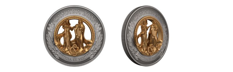 The 2025 Allegories of Justice and Truth coin commemorates this iconic institution’s 150th anniversary. Drawing inspiration from the timeless statues of Justice (Ivstitia) and Truth (Veritas) that guard the steps of the Supreme Court building in Ottawa, its design reflects the values upheld by the Court while highlighting the artistic and cultural traditions that define these allegorical figures.