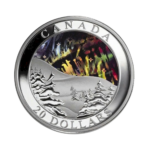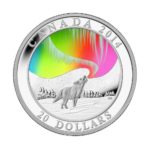Part of the Story of the Northern Lights series, this 2014 $20 fine silver coin portrays a lone wolf howling beneath the vibrant aurora. Inspired by Indigenous legends of the Northern Lights, the design combines traditional storytelling with vivid colour and exceptional detail. Struck in 99.99% pure silver, this coin is both a tribute to Canada’s natural wonders and its rich cultural heritage.