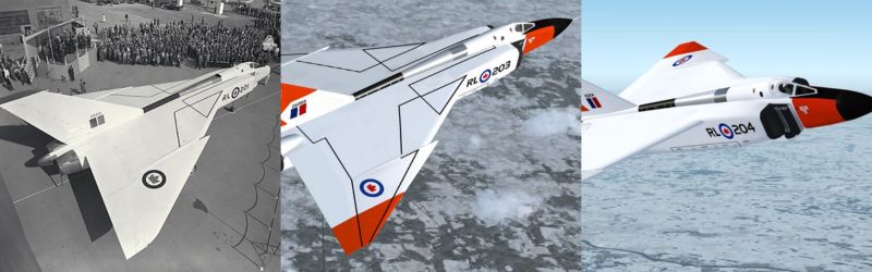 - Depicts an aerial view of the first Avro Arrow prototype, identified by the iconic serial number “RL-201”.